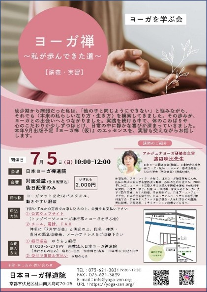 ご都合の悪い月は他の週(第1、3、4)や土曜(いずれも10:00~11:30『アルジュナヨーガ(佐保田ヨーガ)』への振替受講が前日までの連絡で可能です。
